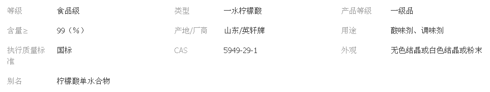 檸檬酸技術(shù)指標(biāo)