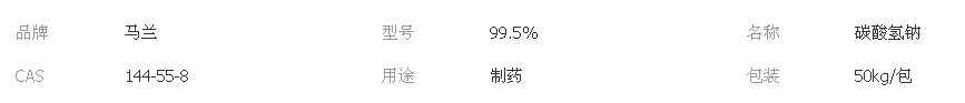 化學(xué)名:碳酸氫鈉,別名:小蘇打、蘇打粉、重碳酸鈉