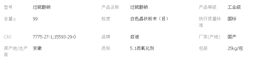 過硫酸鈉是白色結晶性粉末。能逐漸分解,潮濕和高溫能使分解加速。